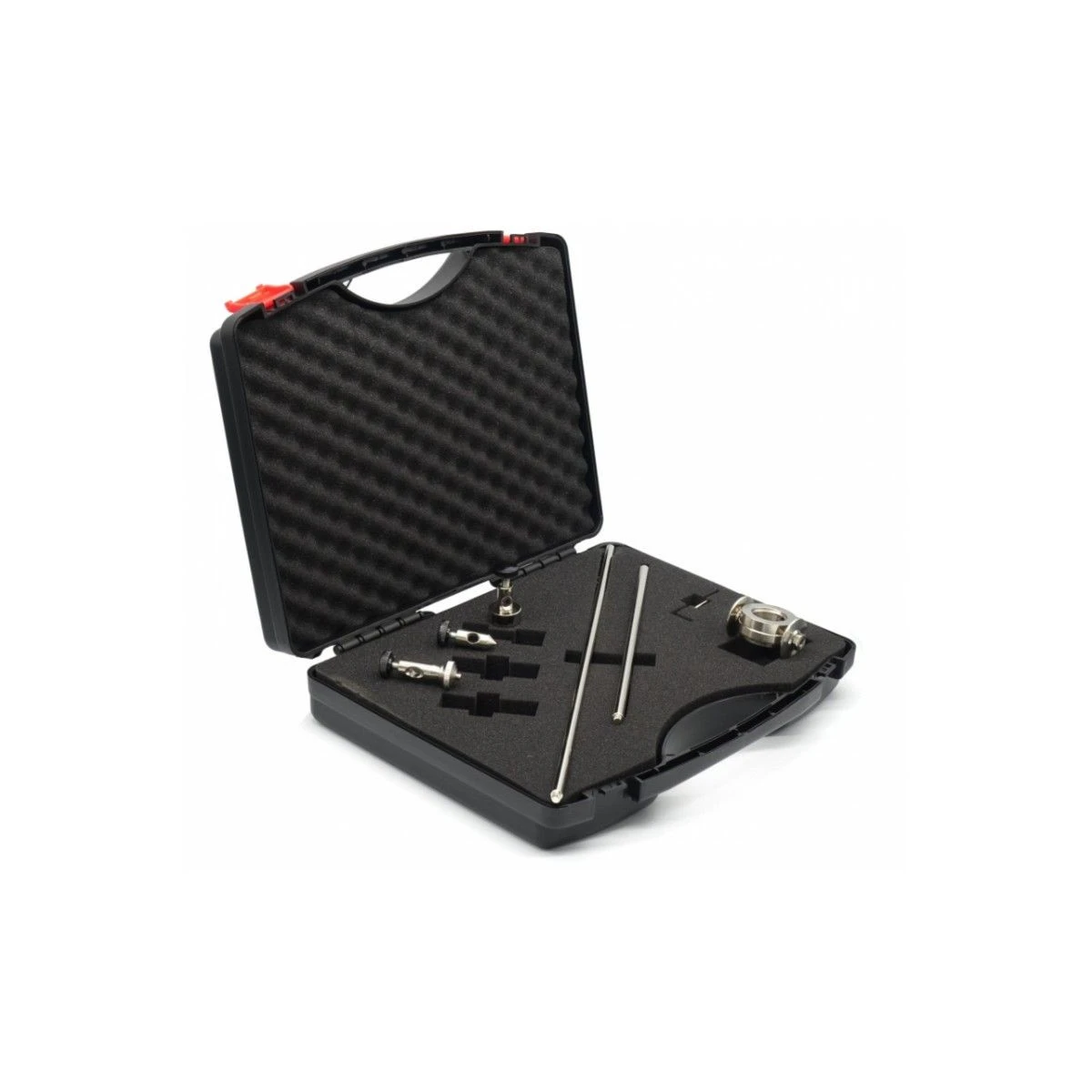 Ergonomiczne uchwyty oraz solidna konstrukcja zapewniają stabilne i pewne mocowanie cyrkla do ciętego materiału, co umożliwia dokładną i wygodną pracę operatora. Zestaw sprzedawany jest w dedykowanej walizce, ułatwiającej przechowywanie i transport.