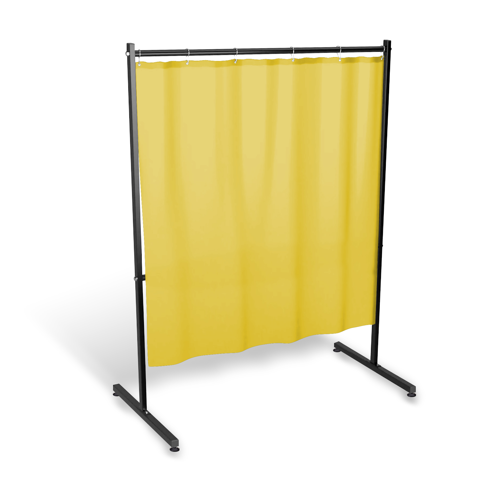 Konstrukcja parawanu SOLID składa się z dwóch pionowych słupków połączonych poziomymi rurkami. Kurtyna wisi swobodnie na górnej rurce. Konstrukcja parawanu jest pewna i stabilna. Stelaż parawanu został pomalowany proszkowo czarną farbą z delikatną strukturą.