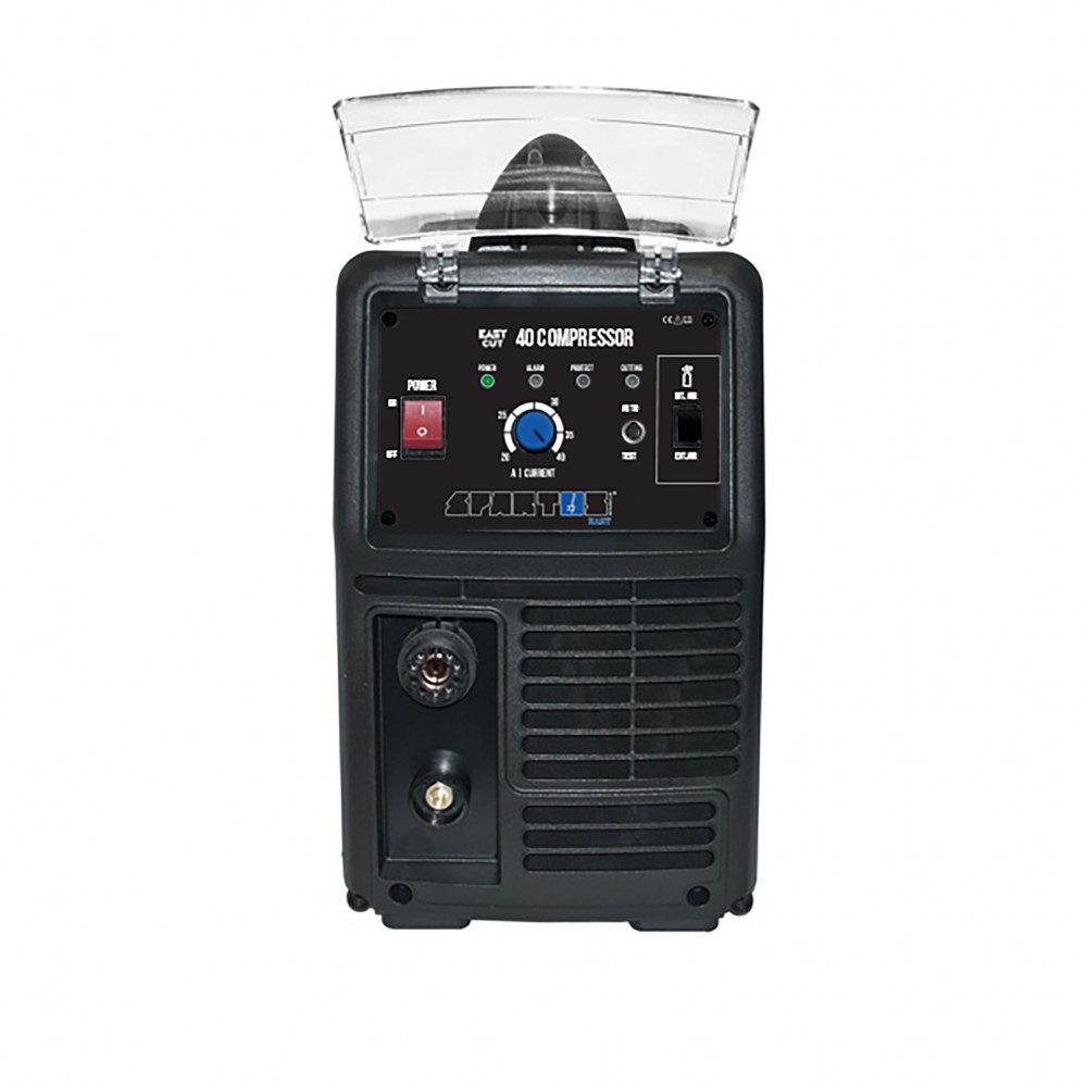 SPARTUS® EasyCUT 40 Compressor to lekka, kompaktowa przecinarka plazmowa z wbudowanym kompresorem sprężonego powietrza o mocy 40A, umożliwiająca cięcie metali do 25 mm. Idealna do pracy w terenie, warsztatach i zakładach produkcyjnych.