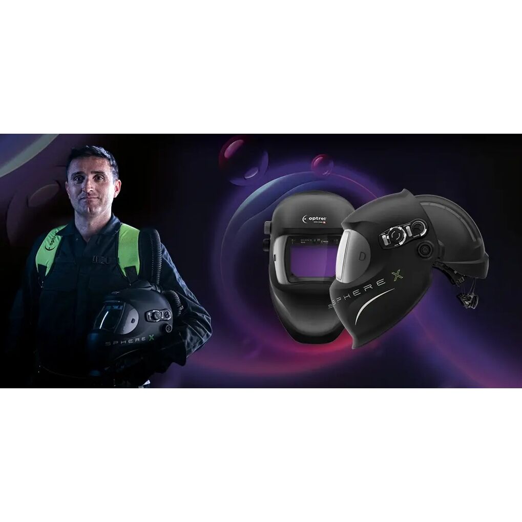 OPTREL SphereX QUATTRO to automatyczna przyłbica spawalnicza z 30% większym polem widzenia, ShadeTronic® i FadeTronic, oferująca maksymalny komfort, bezpieczeństwo i gotowość do intensywnej pracy.