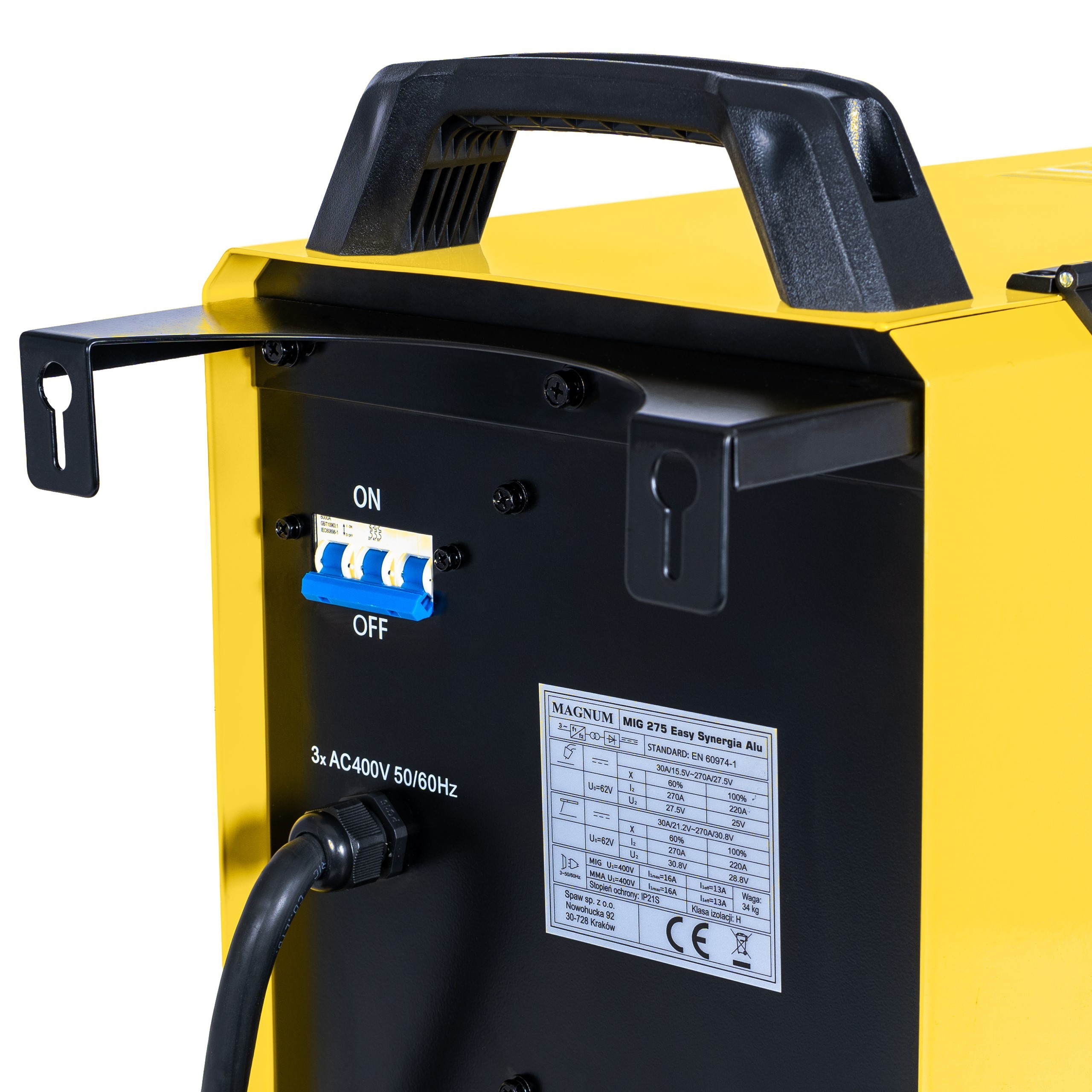 Zasilanie 400V i możliwość spawania bez gazu: Urządzenie sprawdzi się w różnych środowiskach pracy, zapewniając nieprzerwaną moc oraz wszechstronność w zakresie zastosowań spawalniczych.