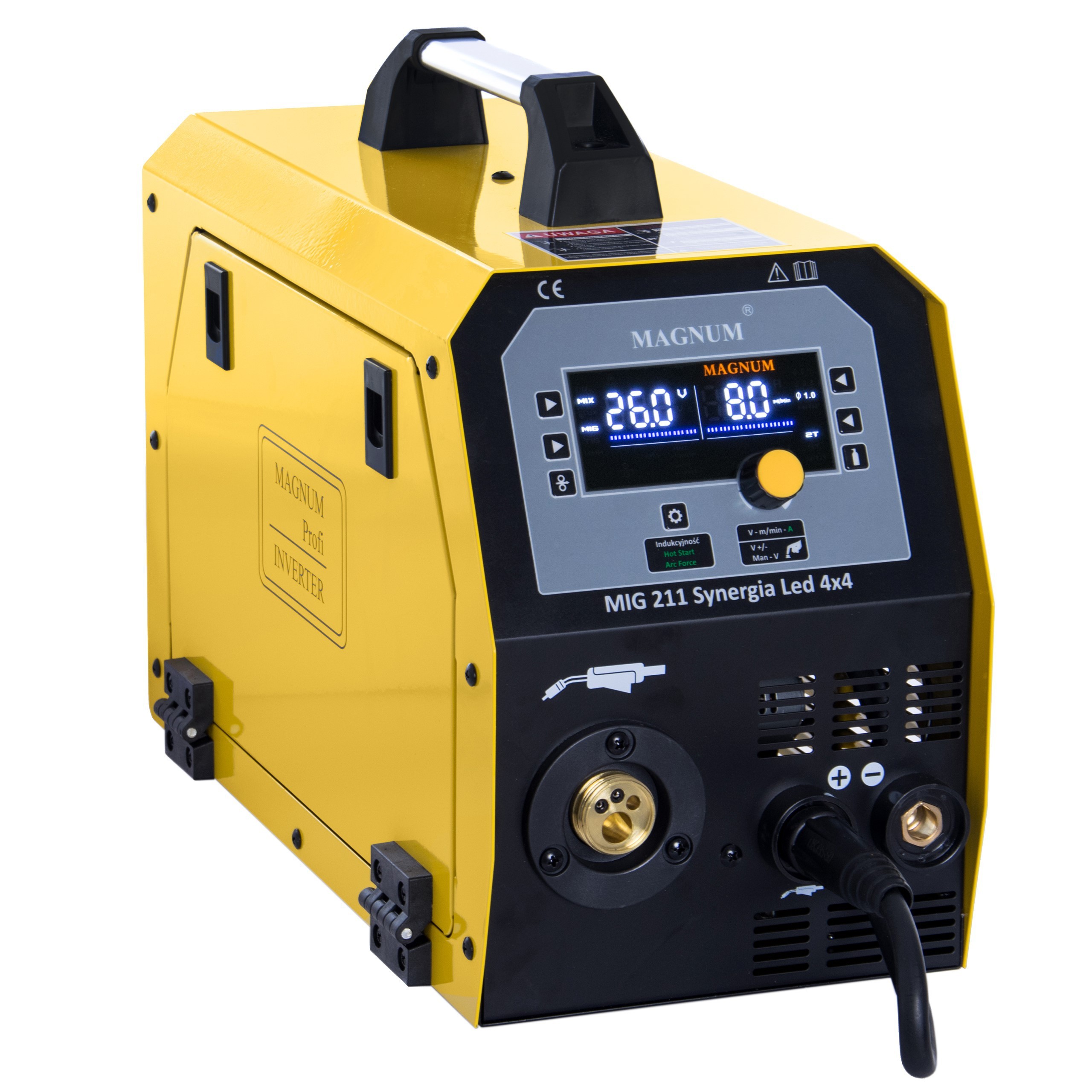 Spawarka Magnum MIG 211 Synergia LED 4×4 to zaawansowane technologicznie urządzenie spawalnicze do spawania metodą MIG/MAG, MMA, TIG LIFT.