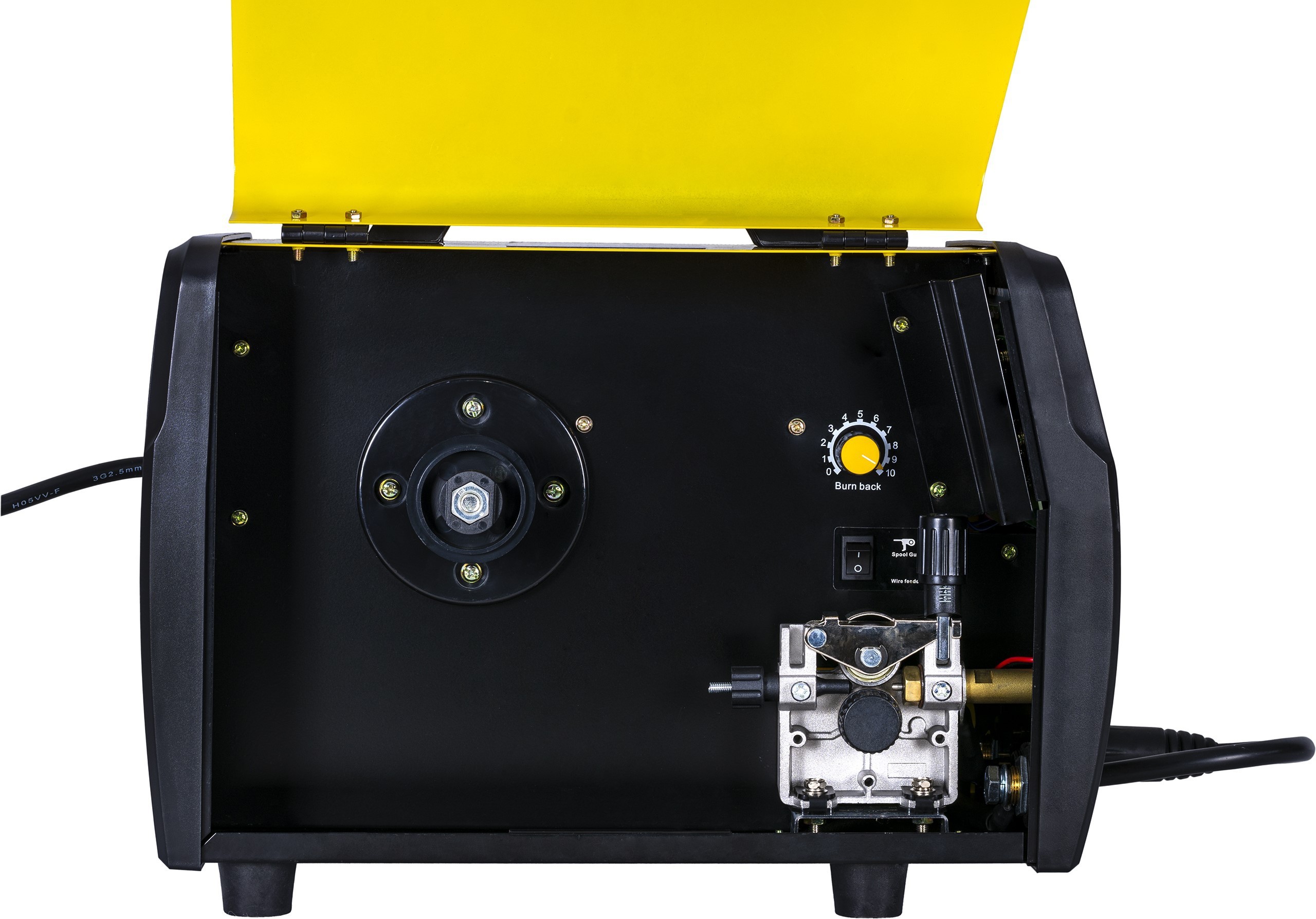 Urządzenie posiada płynną regulacje parametrów spawania, wyposażone jest w przeciążeniowy układ zabezpieczenia termicznego, zapobiegający nadmiernemu przegrzewaniu się. Spawarka wyposażona jest w 2-rolkowy podajnik drutu z gniazdem „euro złącze” co pozwala na podłączenie różnych typów uchwytów spawalniczych.