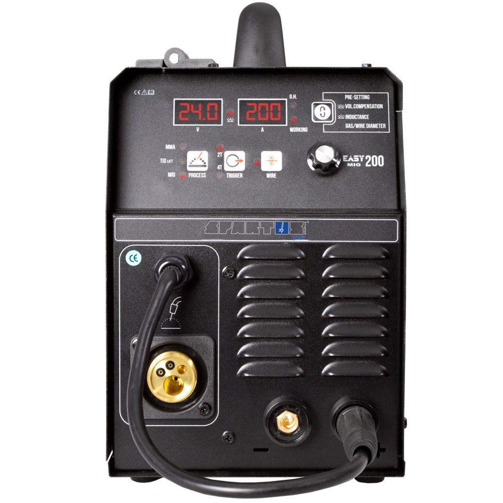SPARTUS® EasyMIG 200 to nowoczesny półautomat spawalniczy wykonany w technologii inwertorowej, umożliwiający spawanie w osłonie gazów obojętnych i aktywnych (MIG/MAG), elektrodą otuloną (MMA) oraz metodą TIG Lift z zajarzeniem łuku przez potarcie.