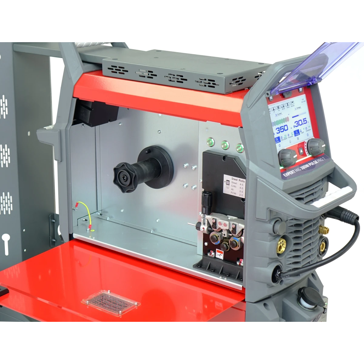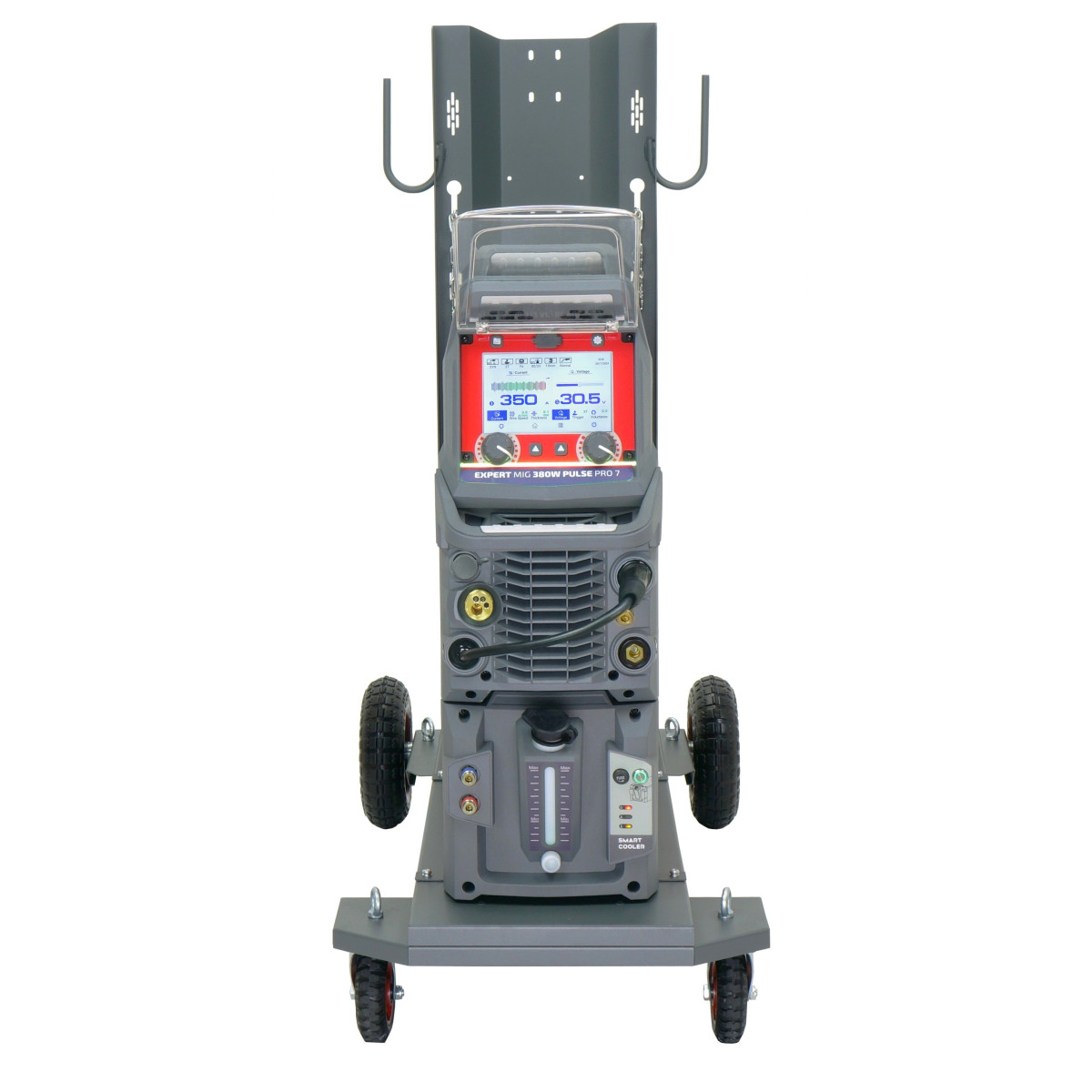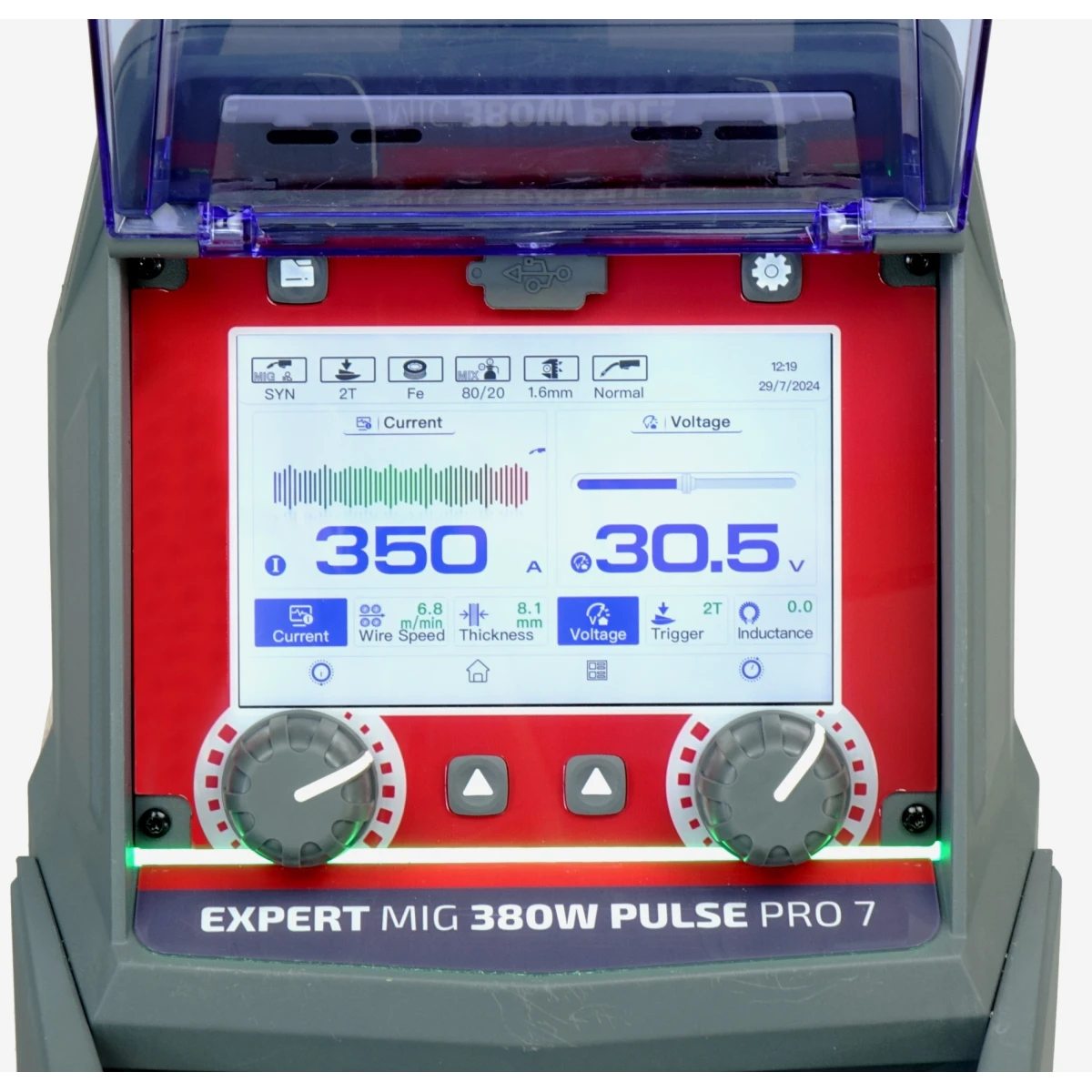 EXPERT MIG 380W PULSE Pro7 LCD – inwertorowe, synergiczne i wielofunkcyjne źródło spawalnicze do metod MIG/MAG, FLUX, TIG LIFT oraz MMA, z możliwością spawania prądem pulsacyjnym (pojedynczy i podwójny PULS). Umożliwia szybkie ustawienie parametrów spawania za pomocą 7-calowego dotykowego wyświetlacza LCD.
