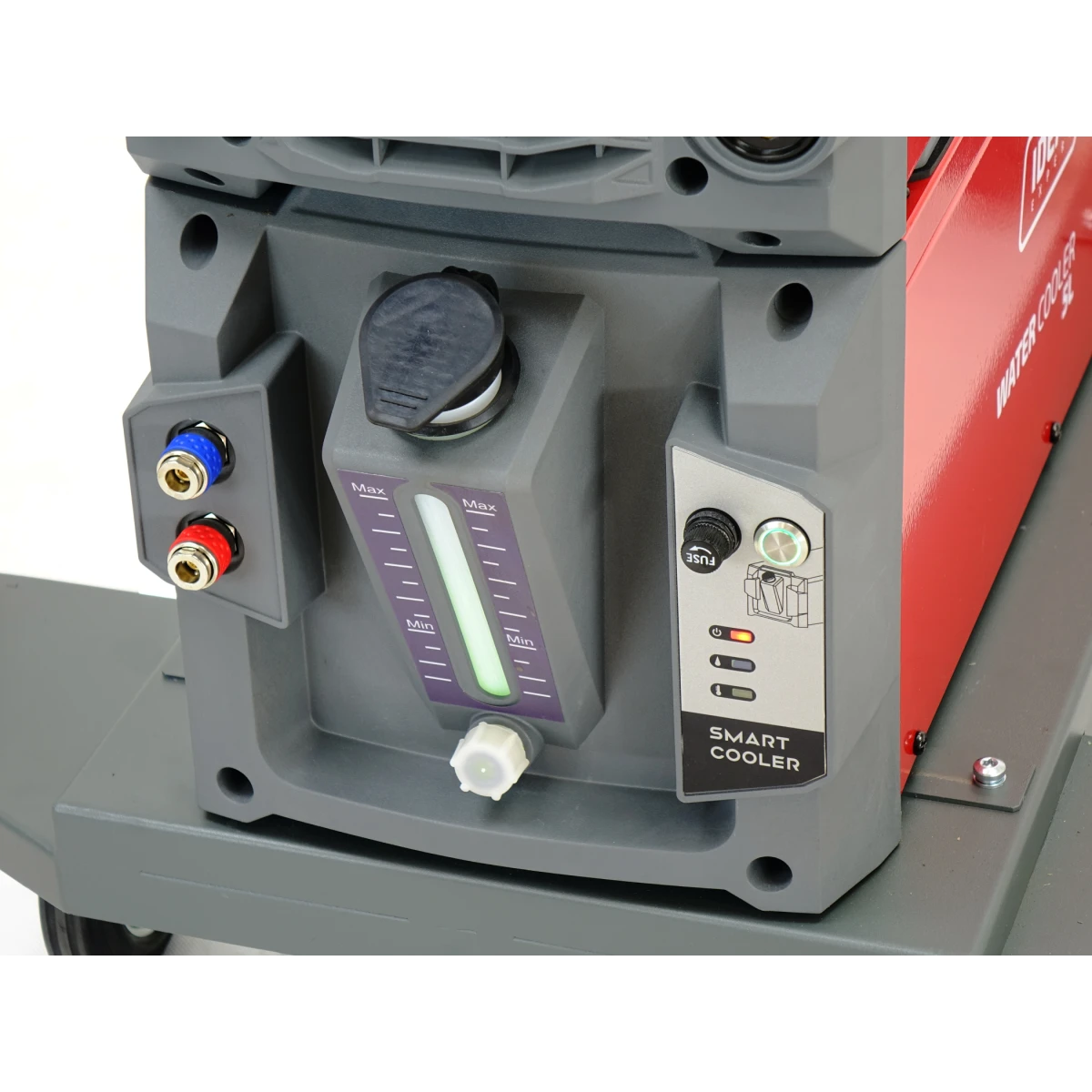 Urządzenie posiada chłodnicę z sygnalizacją przepływu, co zdecydowanie zwiększa jego wydajność oraz zabezpiecza przed przegrzaniem się uchwytu.