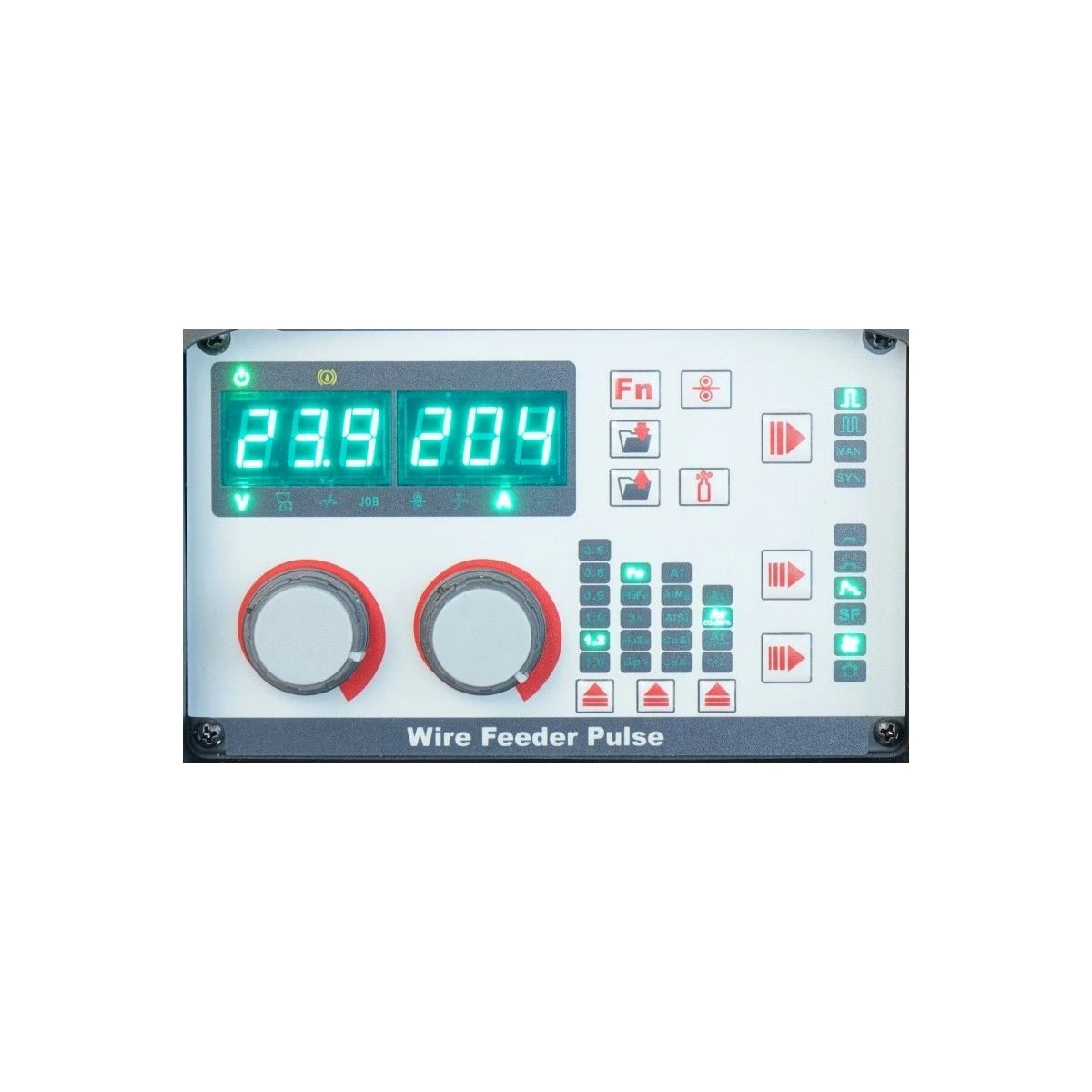 Cyfrowy panel sterowania podajnika umożliwia dokładną regulację parametrów spawania takich jak :