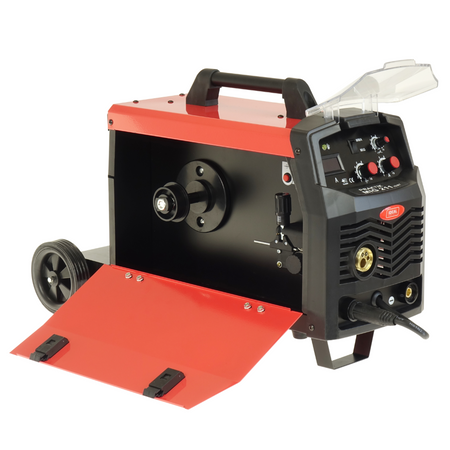 PRAKTIK MIG 211 MMA DIGITAL to nowoczesny, inwertorowy półautomat spawalniczy przeznaczony do spawania metodami MIG/MAG, MMA oraz FLUX (bez gazu).