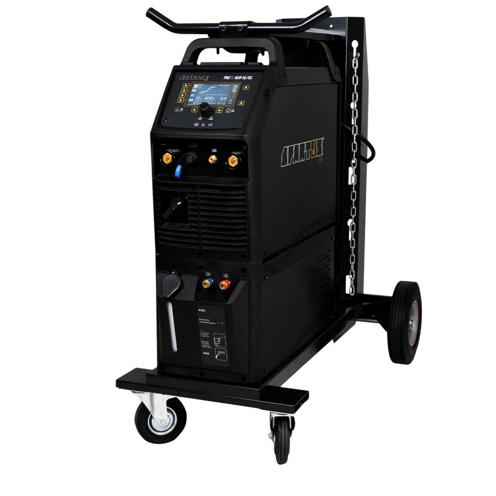 SPARTUS® ProTIG 401PW AC/DC – profesjonalna spawarka TIG AC/DC z pulsem i funkcją MMA AC/DC, prąd 400A, 10 kanałów pamięci, tryby 2T/4T, SPOT, HF/Lift. Wyposażona w chłodnicę cieczy na wózku transportowym. Możliwość zakupu bez uchwytu TIG.