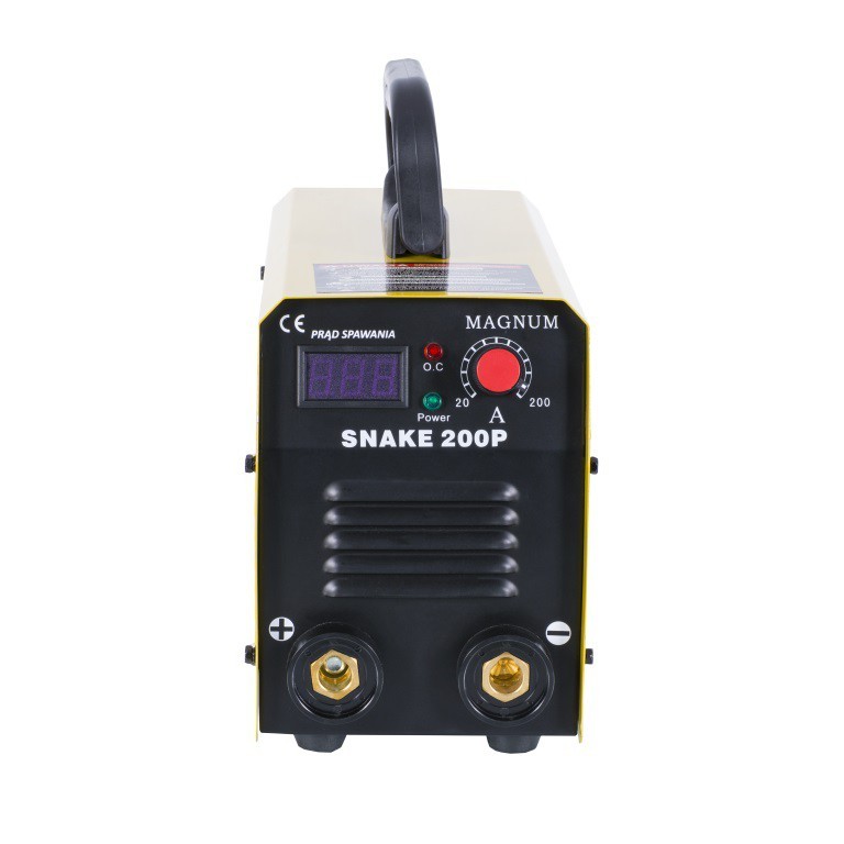 Urządzenie inwerterowe SNAKE 200 PS marki MAGNUM jest lekkim, przenośnym źródłem energii. otulonymi różnych gatunków stali niestopowych, niskostopowych, wysokostopowych, nierdzewnych, żaroodpornych, miedzi, żeliwa. Urządzenie charakteryzuje się dużą sprawnością 200 A/60% oraz znakomitą charakterystyką łuku dla elektrod rutylowych i zasadowych.
