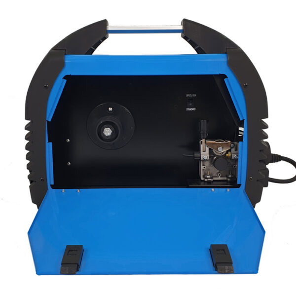 Kompatybilna z uchwytem Spool Gun (SG) – możliwość podłączenia mini podajnika drutu z szpulą D100 (stalową lub aluminiową)