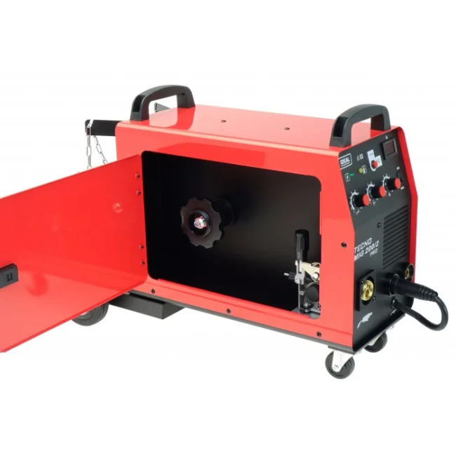 TECNOMIG 200/2 MMA PRO to inwertorowy półautomat spawalniczy przeznaczony do spawania metodami MIG/MAG, MMA oraz FLUX. Urządzenie zaprojektowano z myślą o wszechstronnych zastosowaniach – od prac konserwacyjnych i napraw nadwozi samochodowych, po profesjonalne zadania warsztatowe.