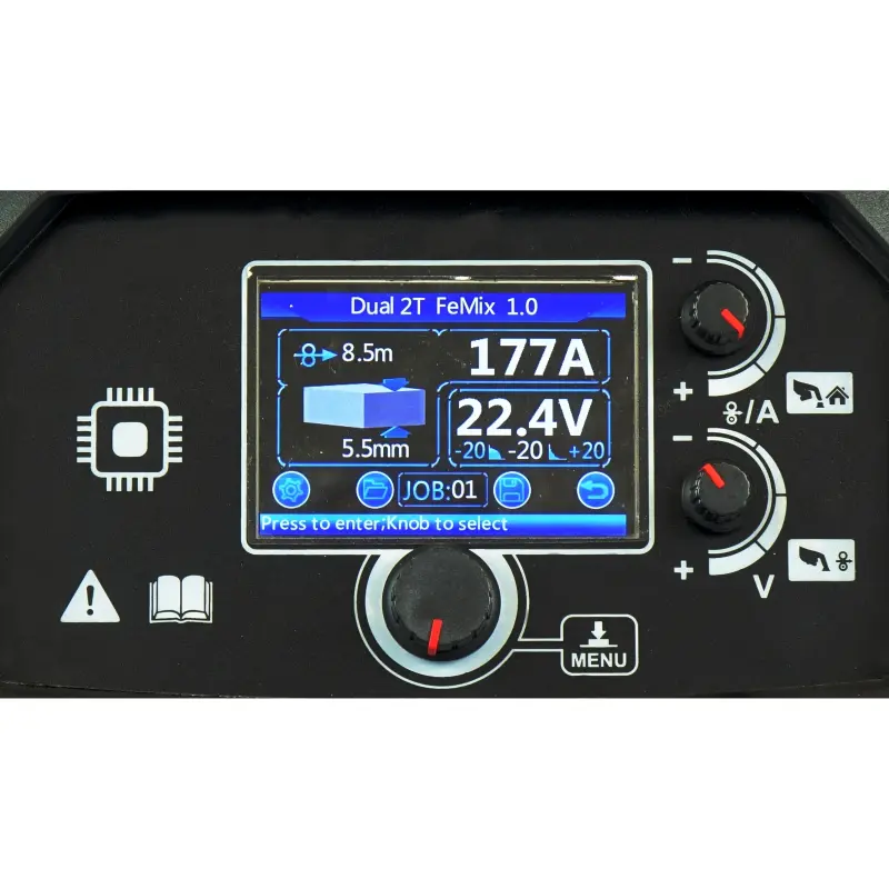 Półautomat oferuje trzy synergiczne tryby spawania MIG/MAG: MIG, MIG PULS i MIG PODWÓJNY PULS. Dostępnych jest 52 programów synergicznych dla różnych materiałów, takich jak AlMg, AlSi, Al99,5, CuSi3, CuAl9, 308LSi, 316LSi oraz FE, co umożliwia szybkie dopasowanie parametrów do rodzaju spawanego materiału i gazu.