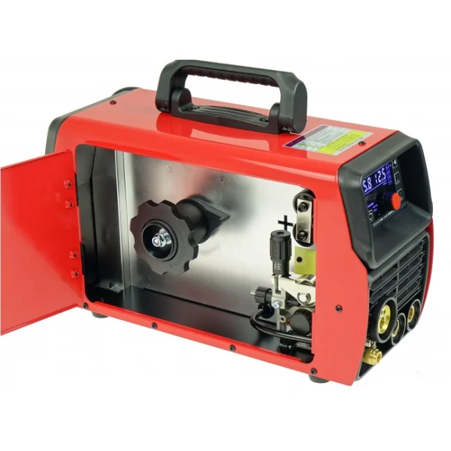 Tryb synergiczny z możliwością ręcznego sterowania, funkcja VRD, tryby 2T/4T, wyświetlacz LED, chłodzenie wentylatorem i zabezpieczenie przeciw przeciążeniu.