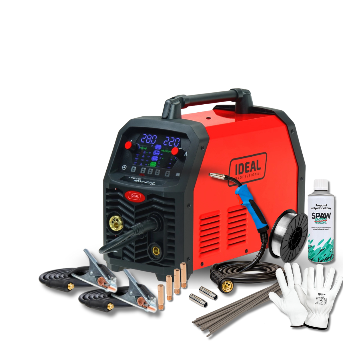 Spawarka inwertorowa TECNO MIG 224 SYNERGIC LED 4×4 Zestaw
