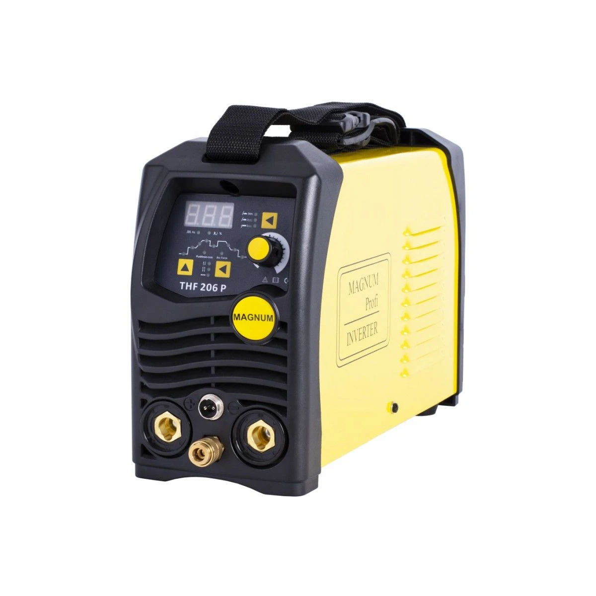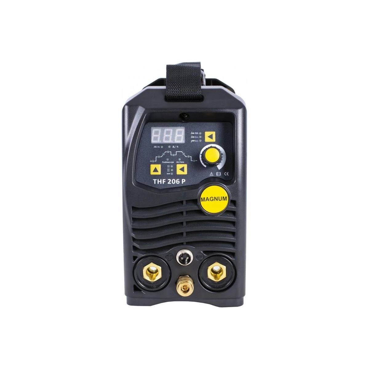 - Magnum THF 208P Smart Puls BiLevel – pracująca metodą TIG HF, to jest z bezstykowym zajarzeniem łuku i opcją Hot Start; to przenośne urządzenie spawalnicze wykorzystywane w warsztatach i zakładach przemysłowych; maksymalny prąd spawania 200A umożliwia pracę w cyklu wynoszącym aż 60%,