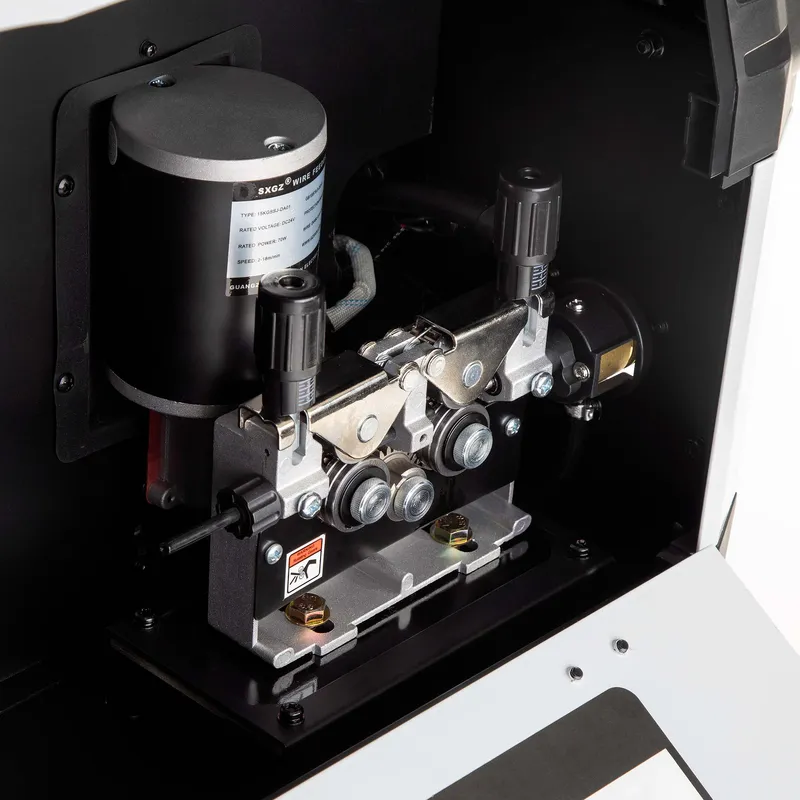 Spawarka z 4 rolkowym podajnikiem drutu, dzięki któremu drut podawany jest płynnie i jednostajnie w zależności od potrzeb. Zaletą rozbudowanego podajnika jest możliwość podłączania długich uchwytów MIG. Lampka wewnątrz spawarki umożliwiająca łatwą wymianę drutu w podajniku. Przycisk (INCHING) umożliwiający szybkie wysunięcie drutu. Możliwość ustawienia prędkości podawania drutu [m/min].