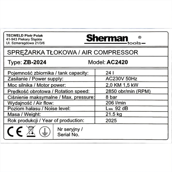 - certyfikowany zbiornik powietrza – bezpieczeństwo i niezawodność.