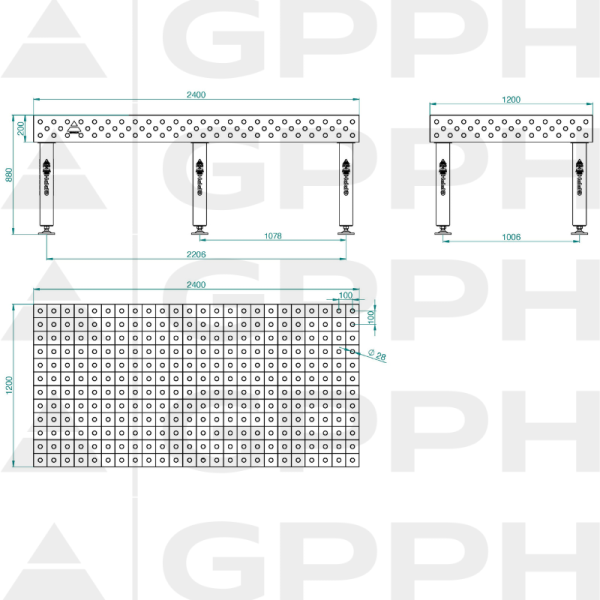 Blat spawalniczy z systemem otworów D16 umożliwia precyzyjne pozycjonowanie oraz stabilne mocowanie elementów w trakcie spawania. Zastosowanie trzpieni, kątowników i zacisków pozwala na szybkie i powtarzalne ustawienie detali bez konieczności każdorazowego pomiaru i poziomowania. Dodatkowo azotowana powłoka blatu zwiększa jego odporność na zużycie, odpryski spawalnicze oraz odkształcenia termiczne, co przekłada się na długotrwałą stabilność i zachowanie dokładności roboczej. W efekcie rozwiązanie to zapewnia wyższą powtarzalność spoin, ograniczenie liczby błędów oraz skrócenie czasu przygotowania elementów do spawania, co ma kluczowe znaczenie w produkcji seryjnej i przy realizacji powtarzalnych konstrukcji.
