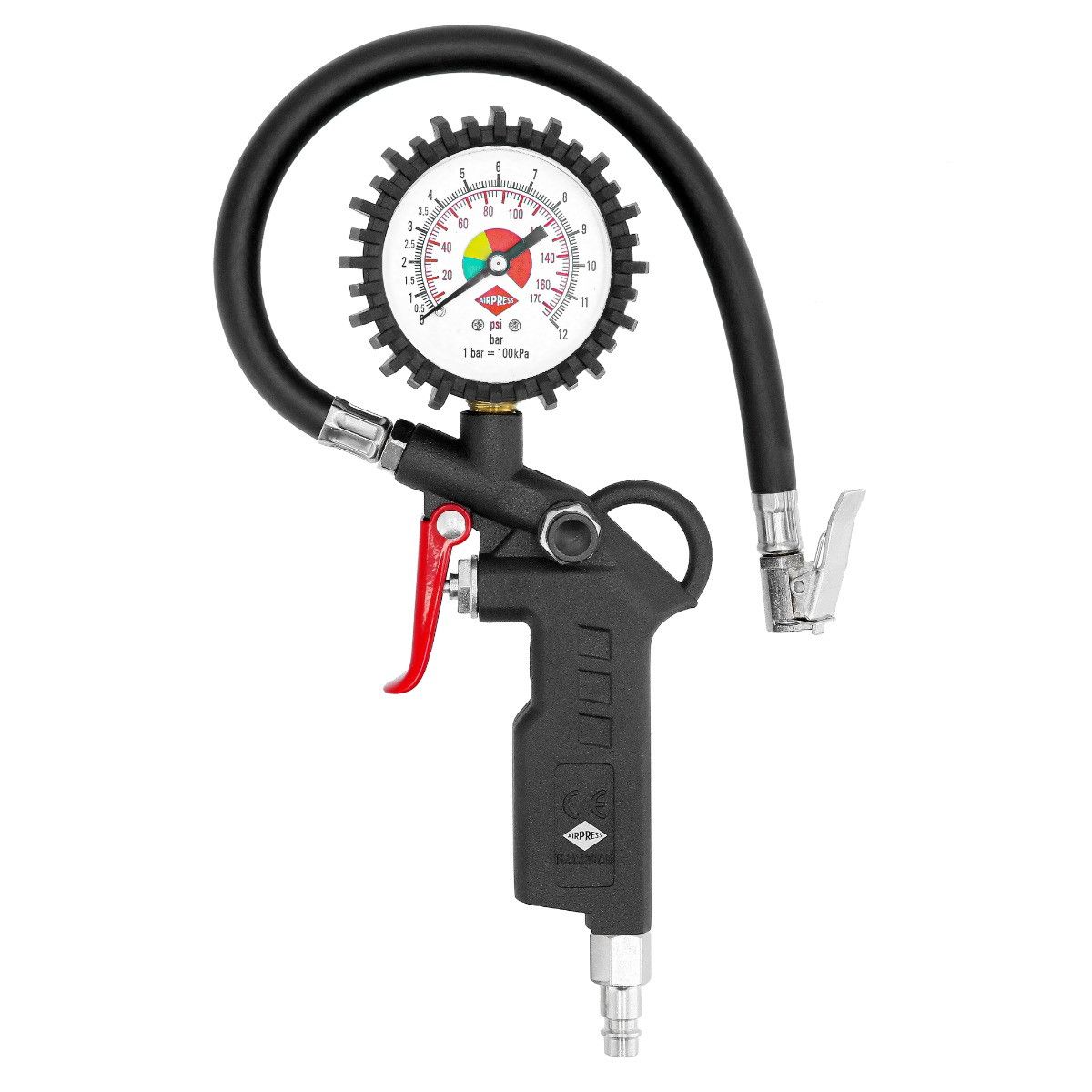 Manometr z pistoletem do pompowania – umożliwia szybkie i precyzyjne uzupełnianie ciśnienia.