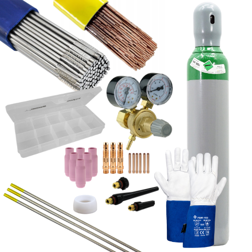 Zestaw startowy TIG DC do stali zwykłej i nierdzewnej + butla